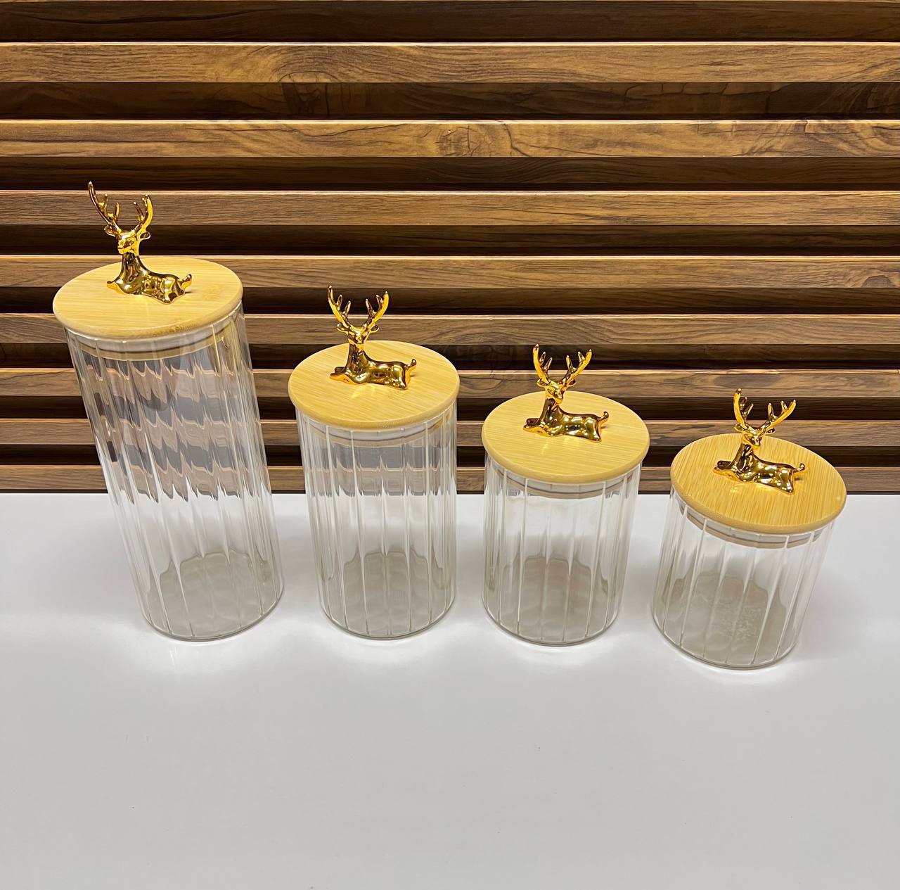 Les couvercles en bambou, surmontés d'un cerf doré au design artistique, confèrent à chaque contenant une touche de luxe et d'originalité. Parfaits pour la cuisine, ils gardent vos aliments secs frais et à portée de main,