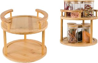 Organisateur Rotatif à Deux Niveaux en Bois de Bambou