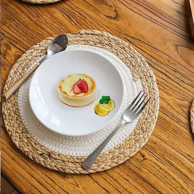 Napperons ronds en rotin tissés à la main – Lot de 6 pièces